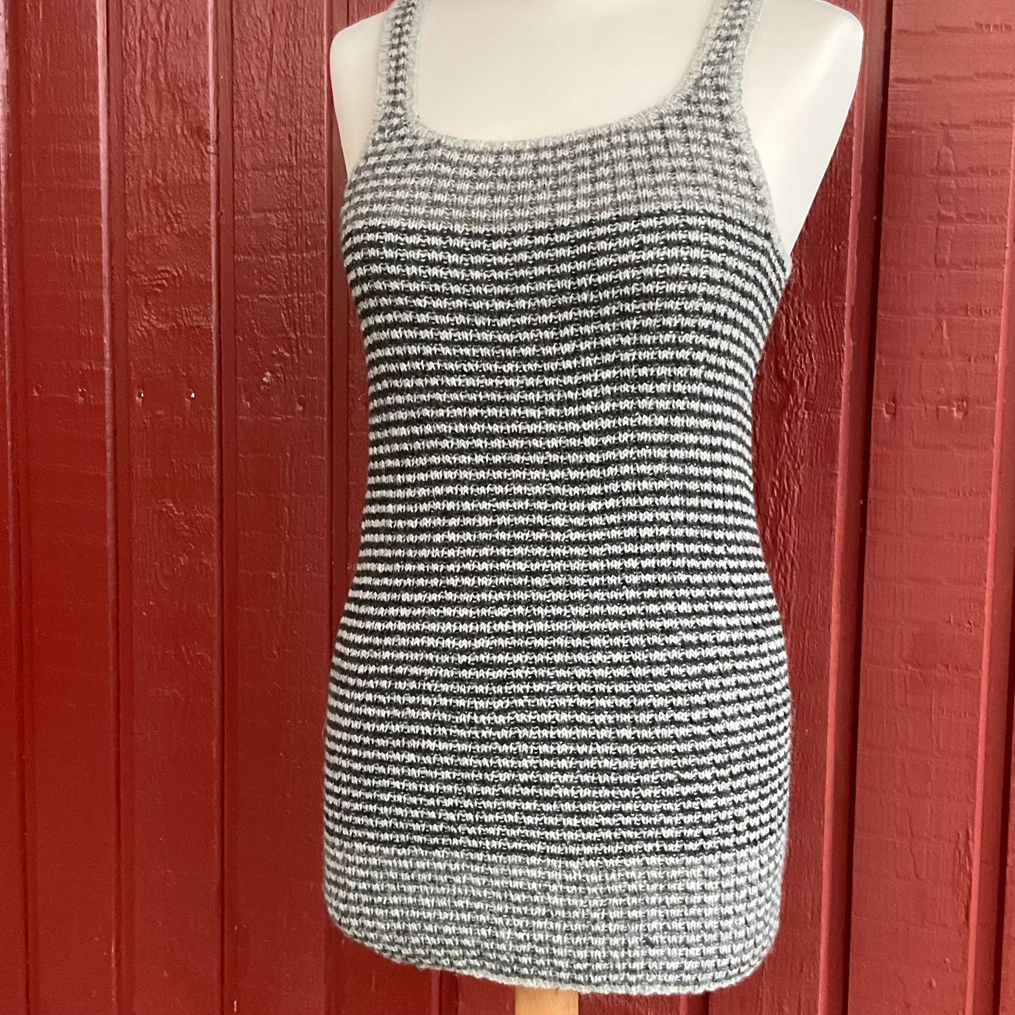 100% wool. Yarn: Navia Uno, leftovers from other vests, so variations in colour from different lots may show. Colours no. 012, 013 and 014. Handwash.